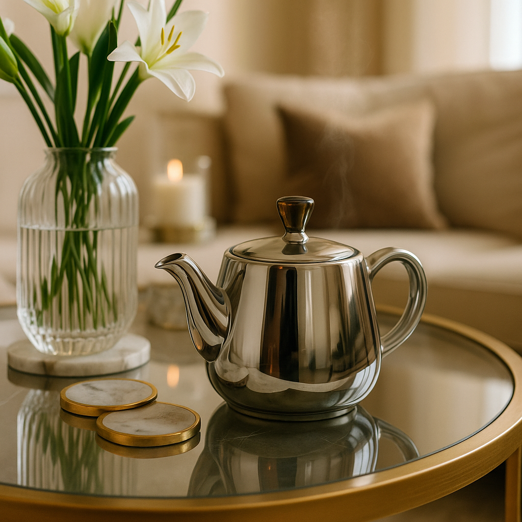 Bring timeless elegance and unmatched durability to your tea ritual with the Silver Duo, a handcrafted kettle that combines luxurious aesthetics with world-class quality standards. Designed for modern homes, this kettle is not just a serveware piece but a statement of sophistication and safety.